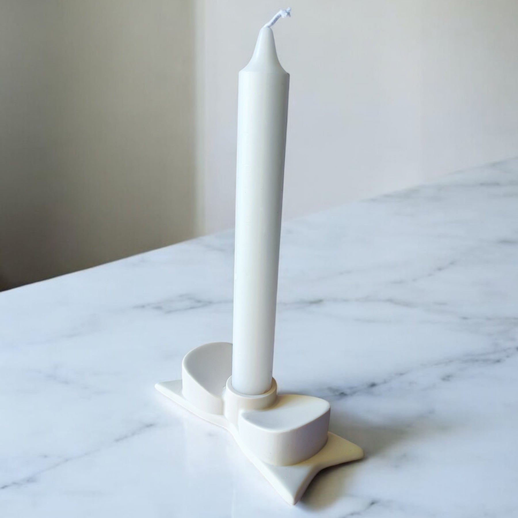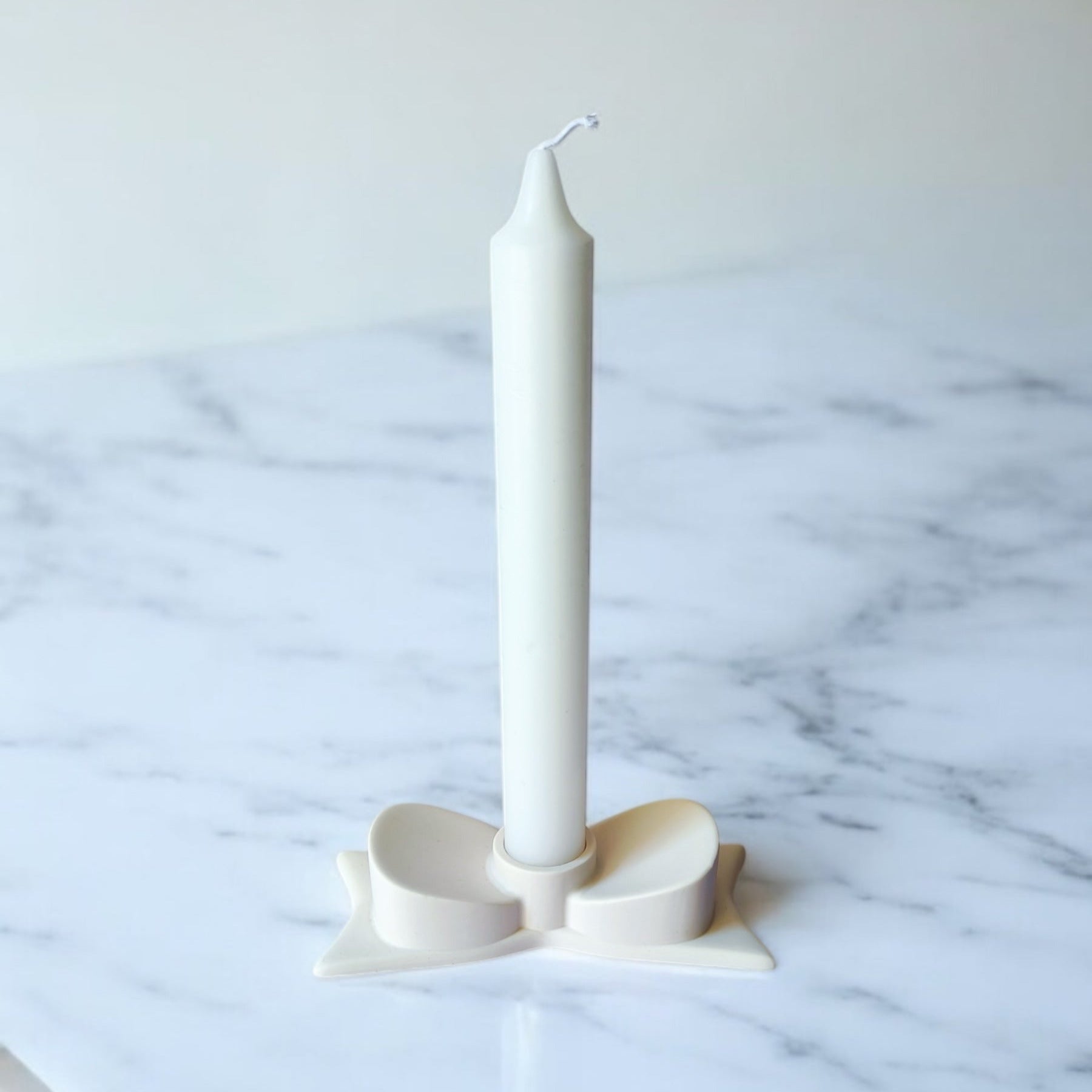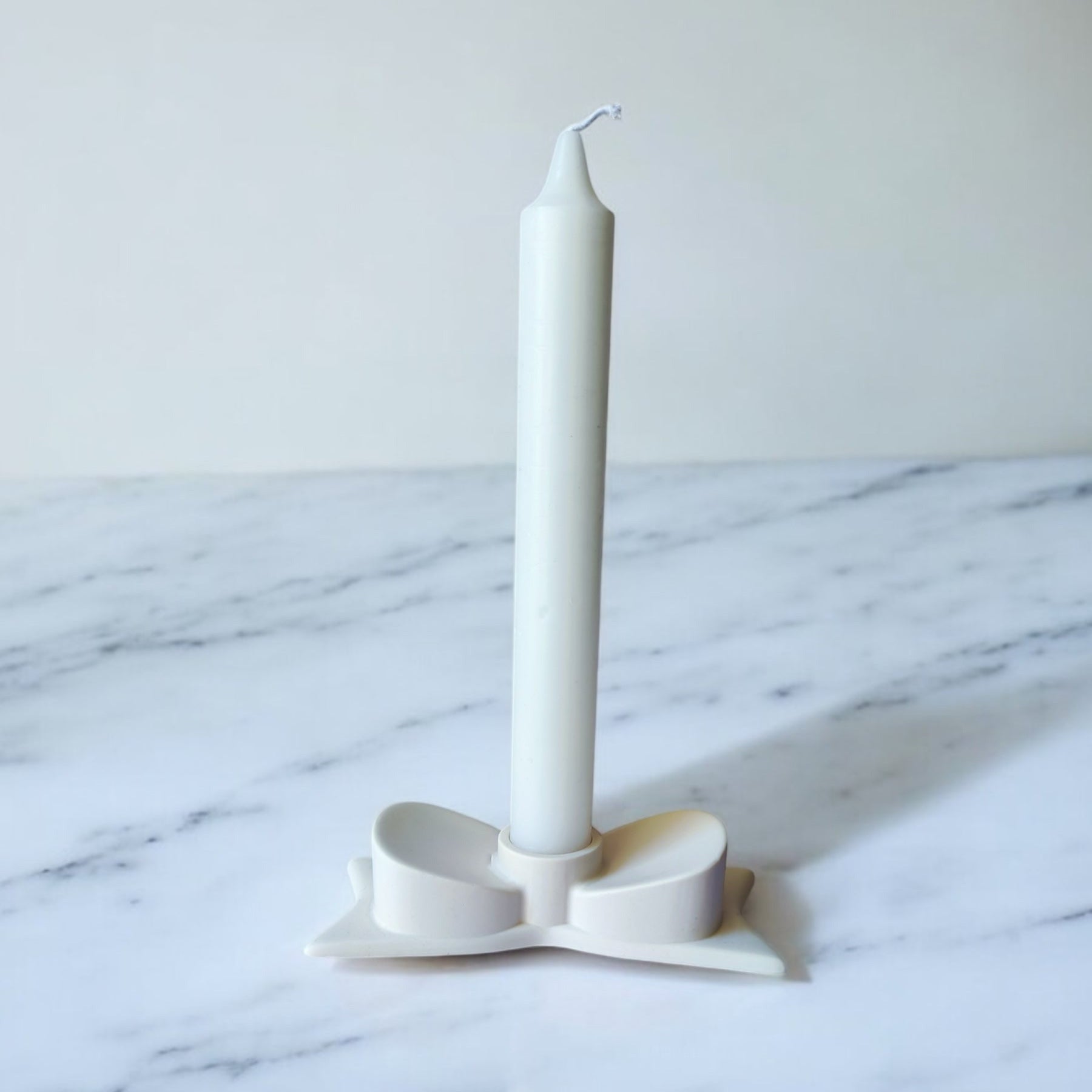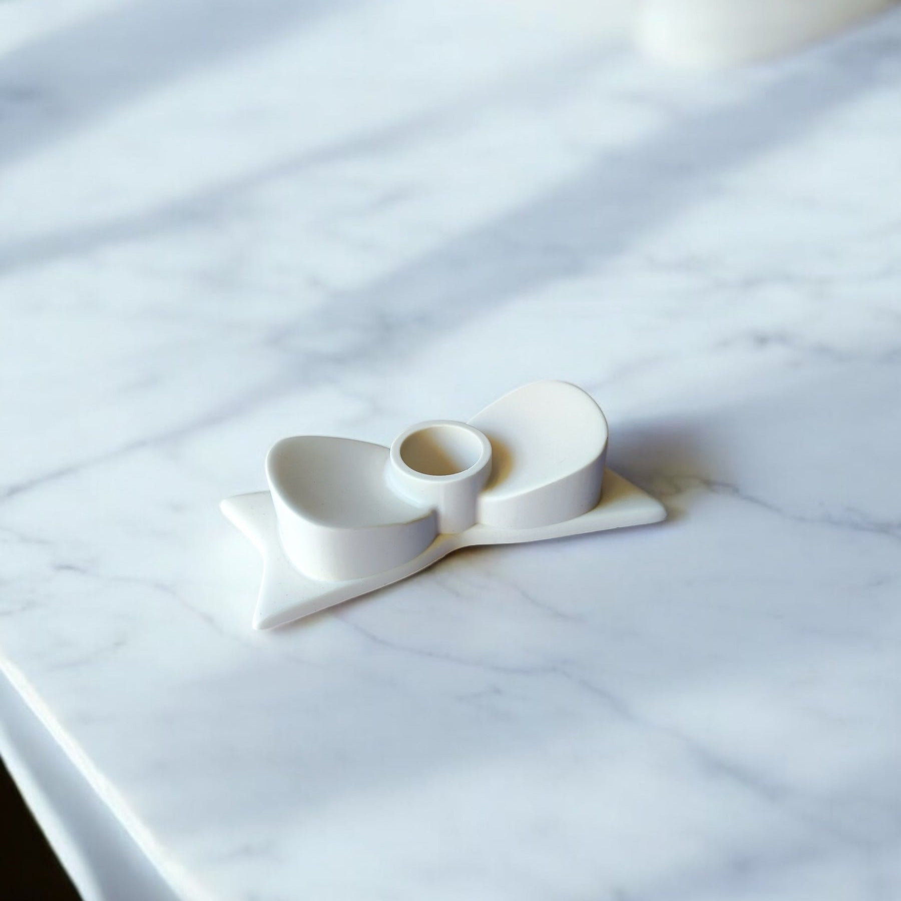 Grace your space with the soft romance of the Twilight Ribbon – a delicately crafted bow-shaped candlestick holder designed to add a touch of charm and sophistication to any setting.